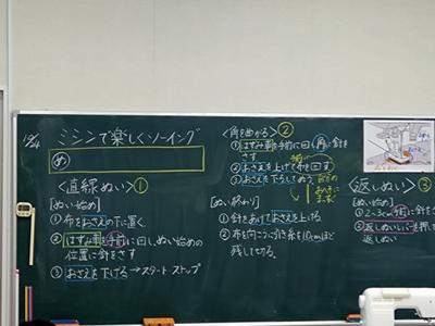 初めて裁縫道具を使う5年生の子どもたち、黒岩先生からひとつひとつ丁寧に説明をしてもらいながら、チャコペンや裁ちばさみ、長針、糸切りばさみなど、次々と取り出し、作業を進めました。